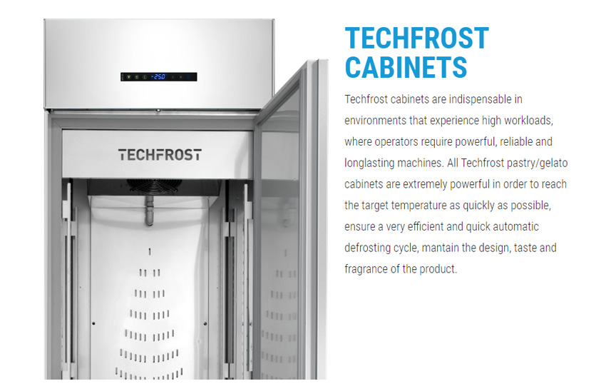 Tủ Techfrost không thể thiếu trong môi trường có khối lượng công việc lớn, nơi các nhà khai thác yêu cầu máy móc mạnh mẽ, đáng tin cậy và lâu dài. Tất cả các tủ bánh ngọt / gelato của Techfrost đều cực kỳ mạnh mẽ để đạt được nhiệt độ mục tiêu càng nhanh càng tốt, đảm bảo chu trình rã đông tự động rất hiệu quả và nhanh chóng, đảm bảo thiết kế, hương vị và mùi thơm của sản phẩm.