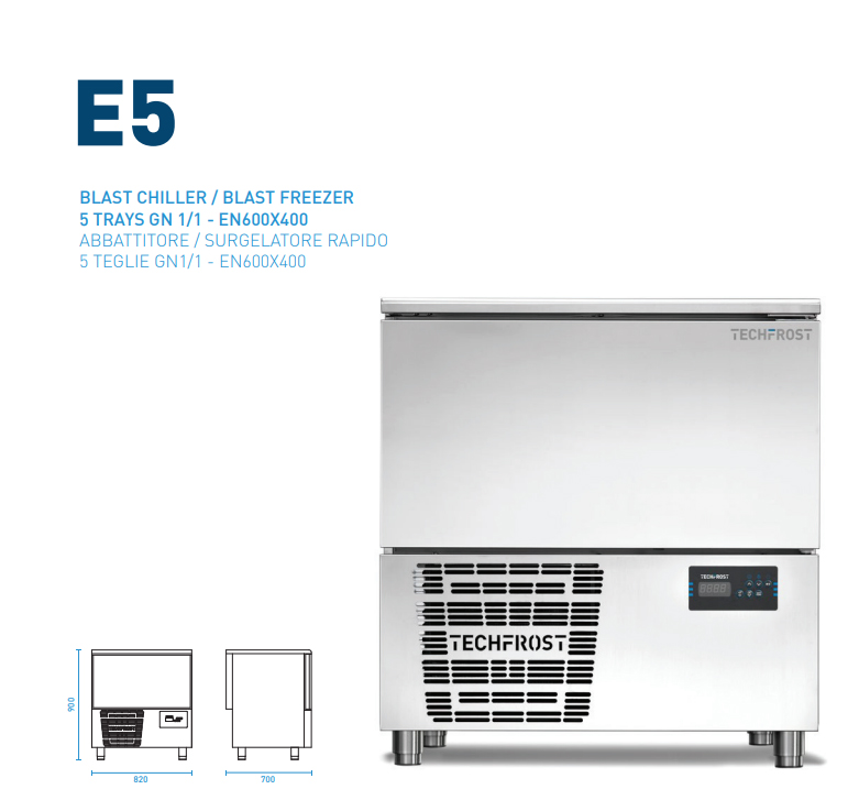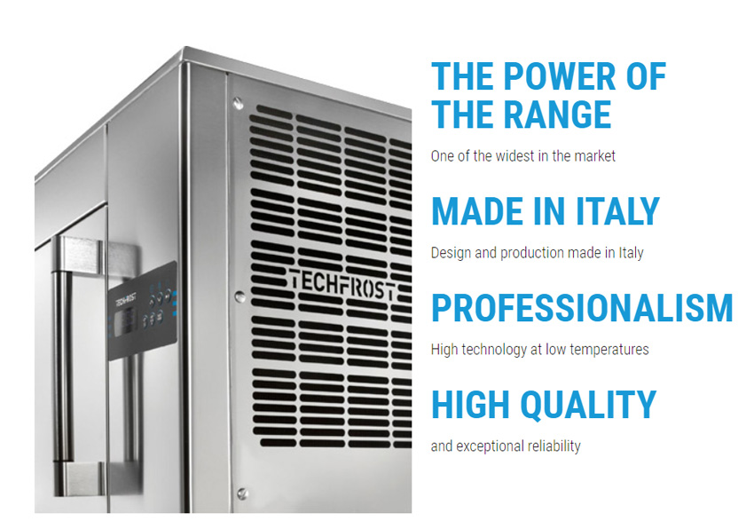 Máy làm lạnh nổ Techfrost là dụng cụ thiết yếu cho phép chế biến thực phẩm an toàn, chất lượng cao. Giảm nhanh nhiệt độ thực phẩm lõi (làm lạnh từ + 90 ° C xuống + 3 ° C trong 90 phút; đông lạnh từ + 90 ° C đến -18 ° C trong 240 phút) ức chế sự phát triển của vi sinh vật trong khi vẫn giữ được độ tươi và hương vị của mọi thực phẩm còn nguyên vẹn bằng cách chỉ để sản phẩm tiếp xúc với luồng khí gián tiếp.