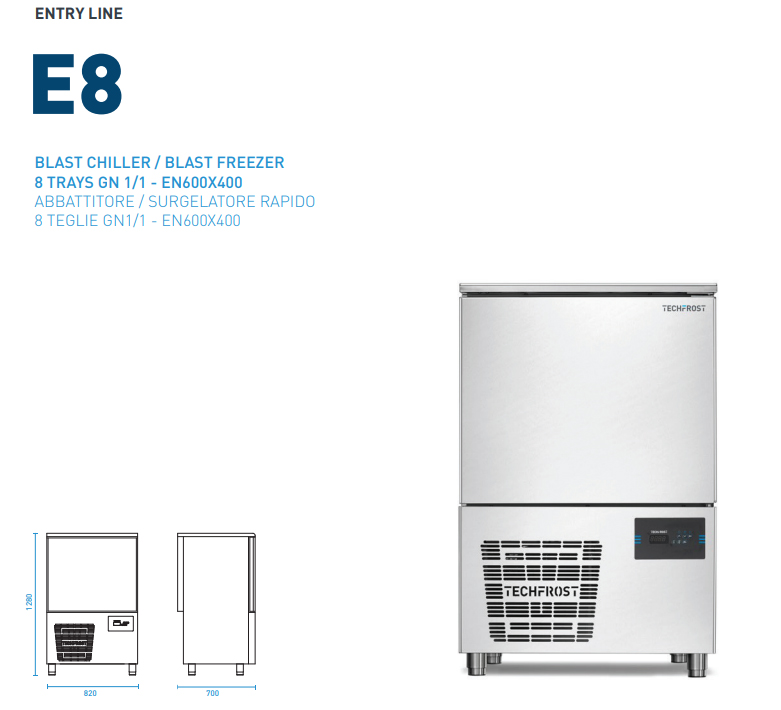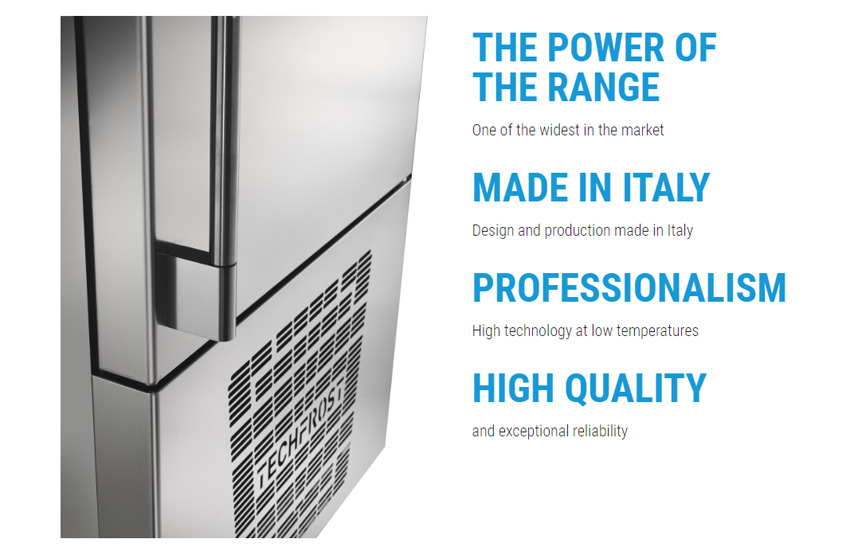 Máy làm lạnh nổ Techfrost là dụng cụ thiết yếu cho phép chế biến thực phẩm an toàn, chất lượng cao. Giảm nhanh nhiệt độ thực phẩm lõi (làm lạnh từ + 90 ° C xuống + 3 ° C trong 90 phút; đông lạnh từ + 90 ° C đến -18 ° C trong 240 phút) ức chế sự phát triển của vi sinh vật trong khi vẫn giữ được độ tươi và hương vị của mọi thực phẩm còn nguyên vẹn bằng cách chỉ để sản phẩm tiếp xúc với luồng khí gián tiếp.