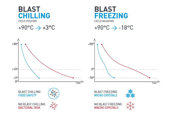 Máy làm lạnh / máy làm đông lạnh loại bỏ hoàn toàn nguy cơ ô nhiễm vi khuẩn dẫn đến việc chuẩn bị thực phẩm hoàn toàn an toàn và hợp vệ sinh.